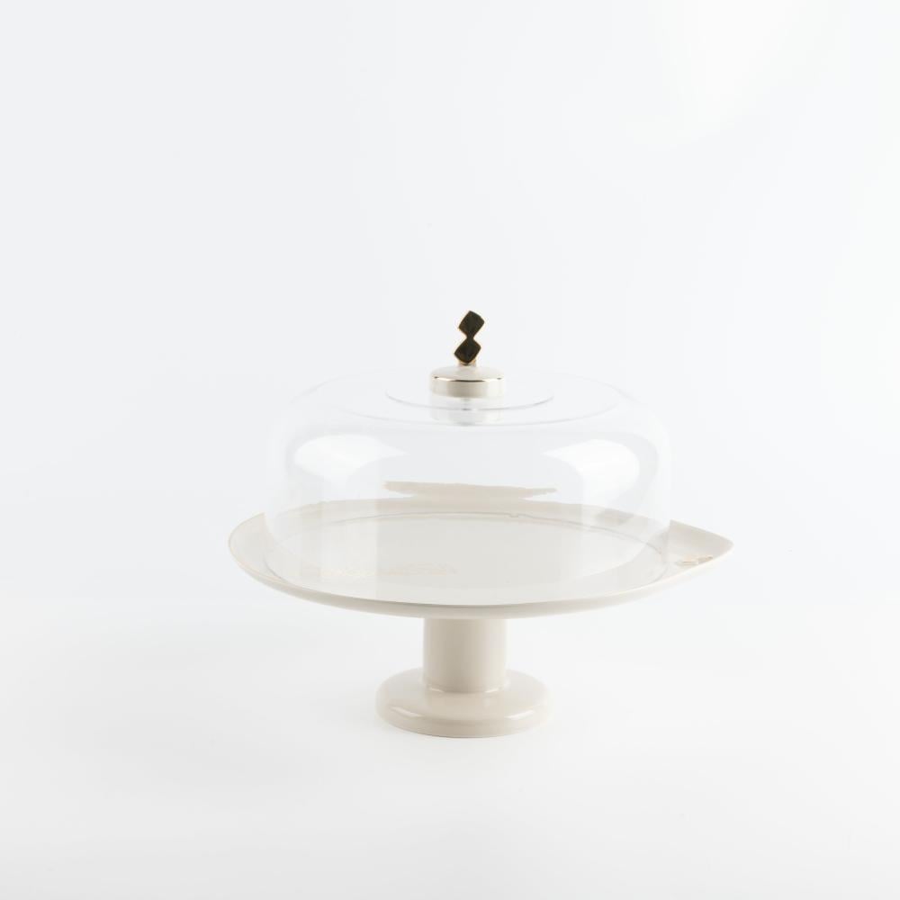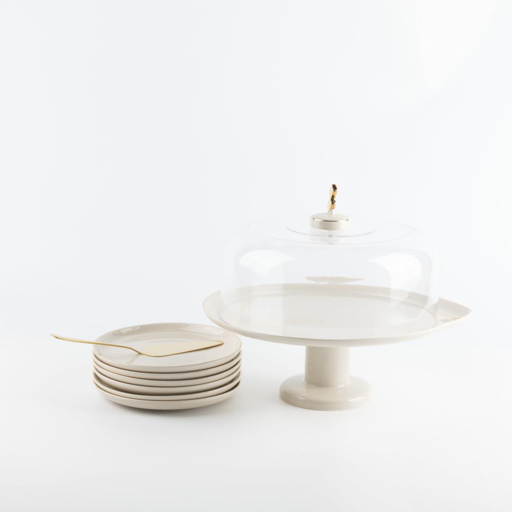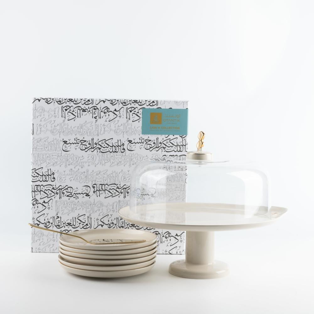 طقم تقديم الكيك 9 قطع من مجموعة لقاء - بيج و ذهبي
