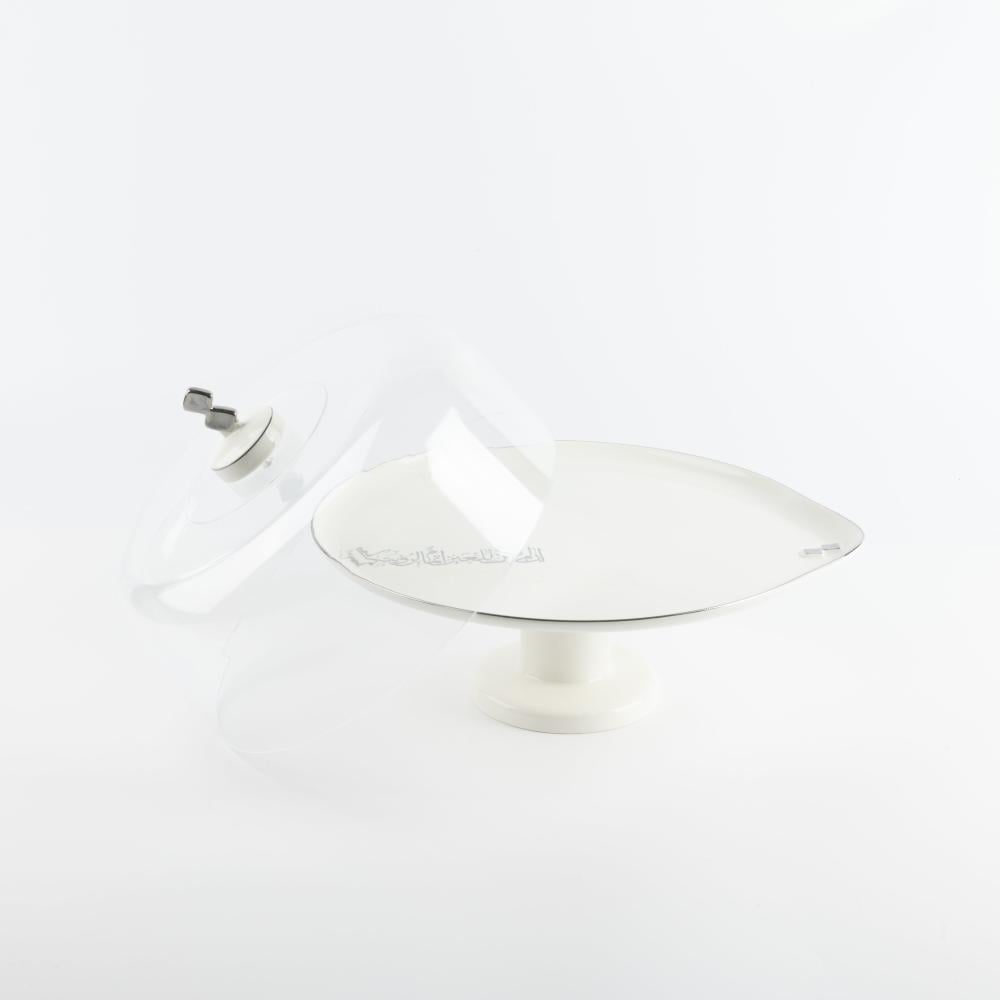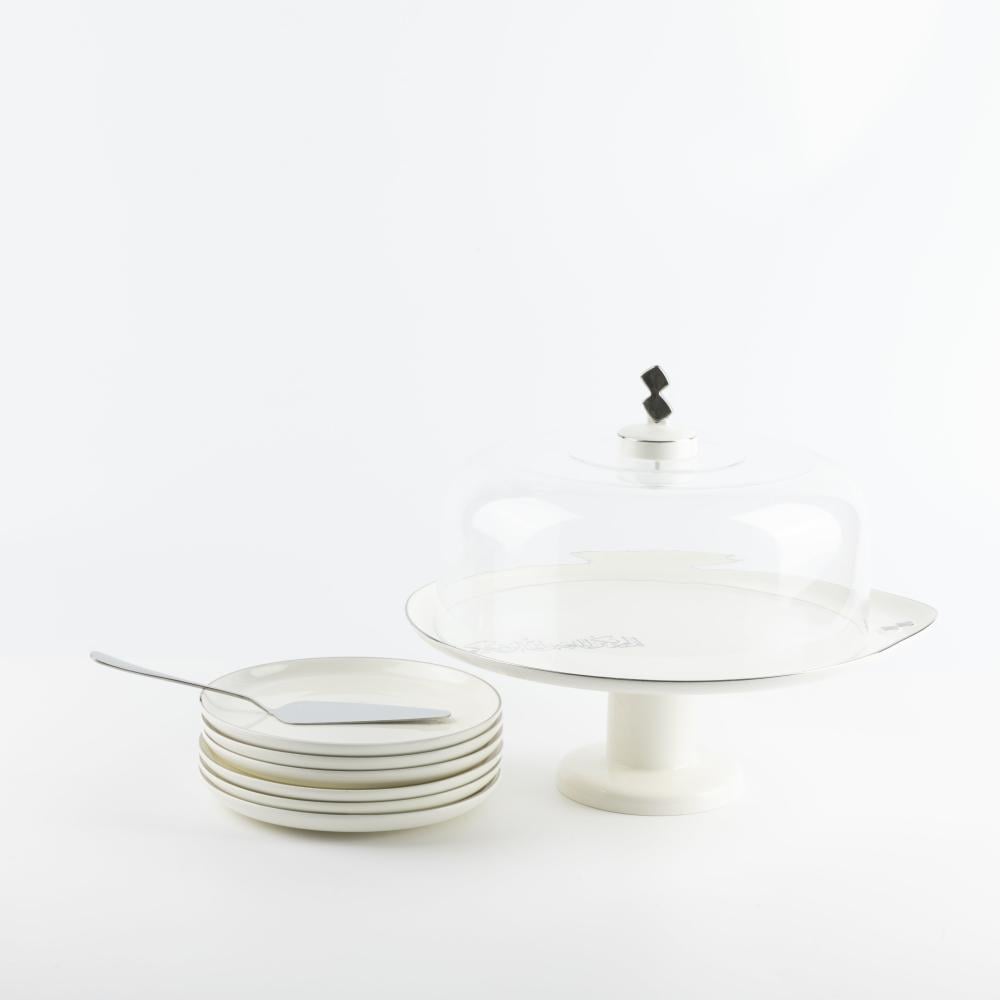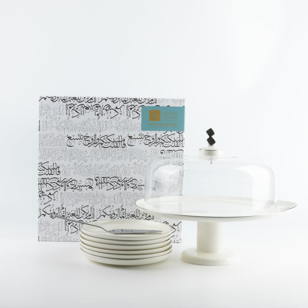 طقم تقديم الكيك 9 قطع من مجموعة لقاء - أبيض لؤلؤي و فضي