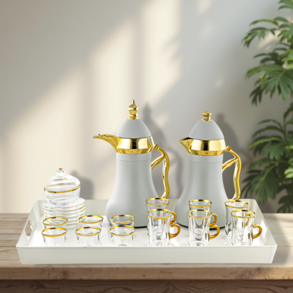 طقم الشاي والقهوة 22 قطعة ذهبي
