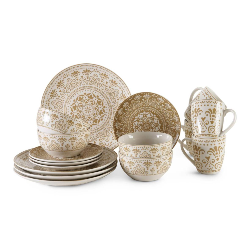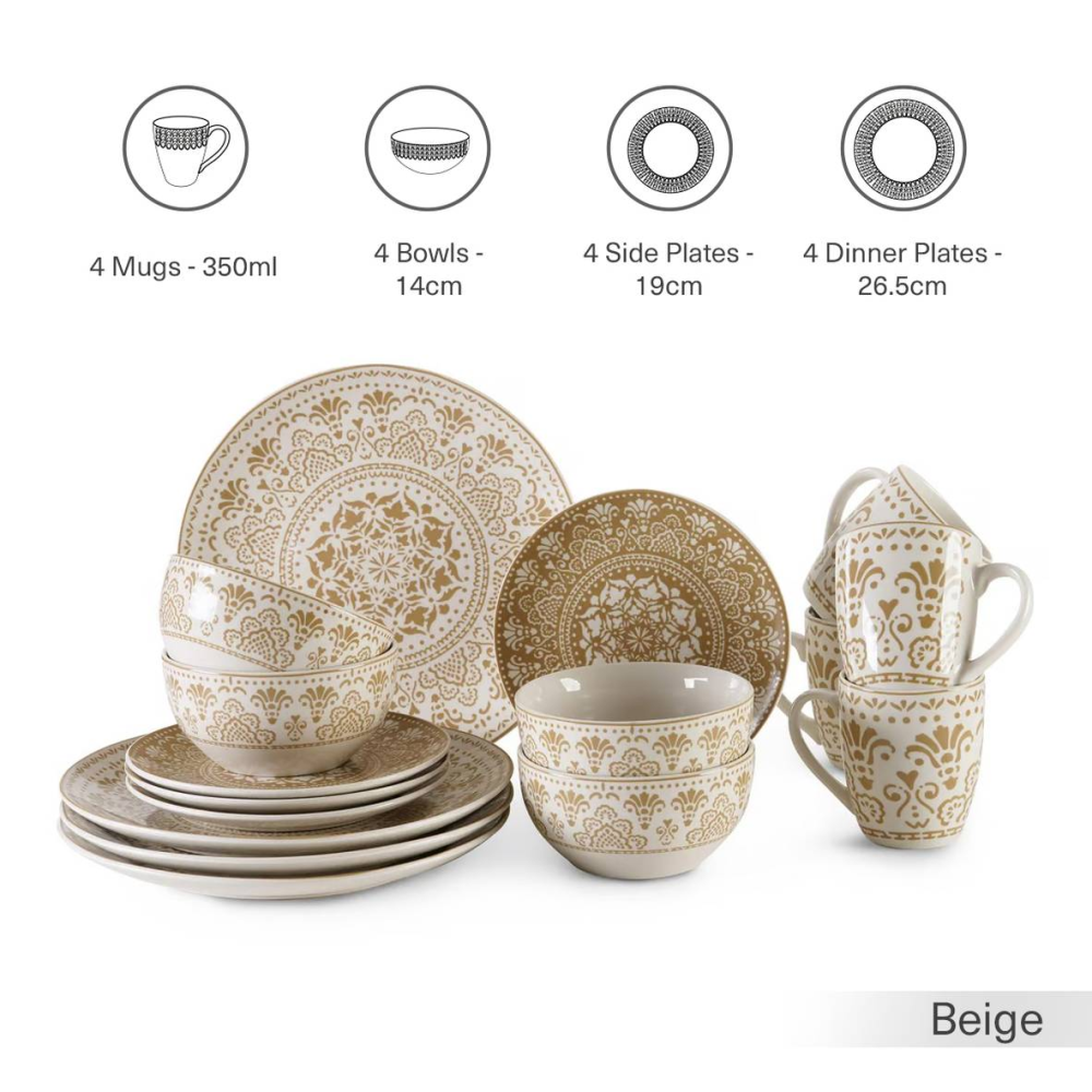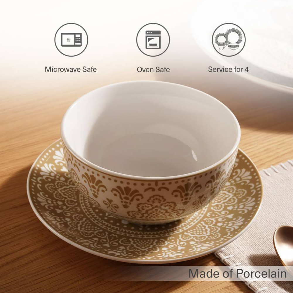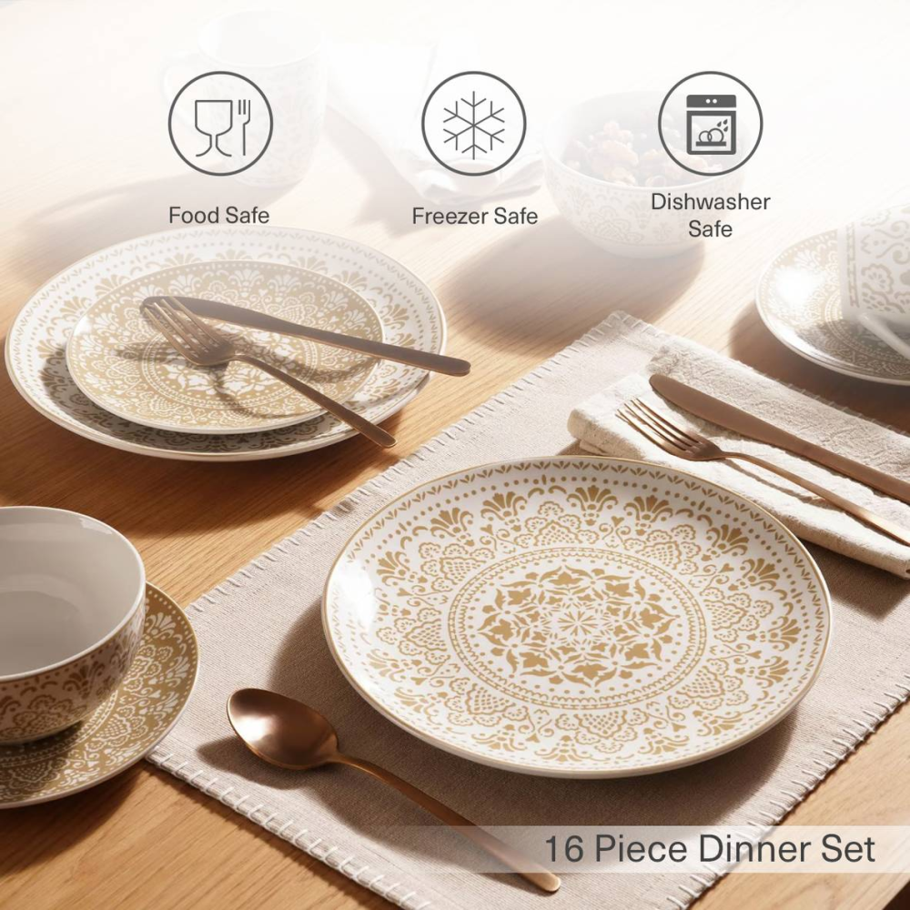 عززي أناقة مائدتك بطقم العشاء الرائع المكون من 16 بتصميم عصري أنيق. مصنوع من البورسلين عالي الجودة.