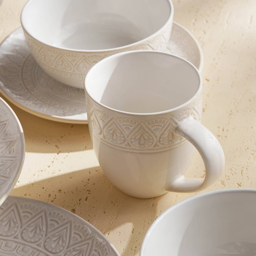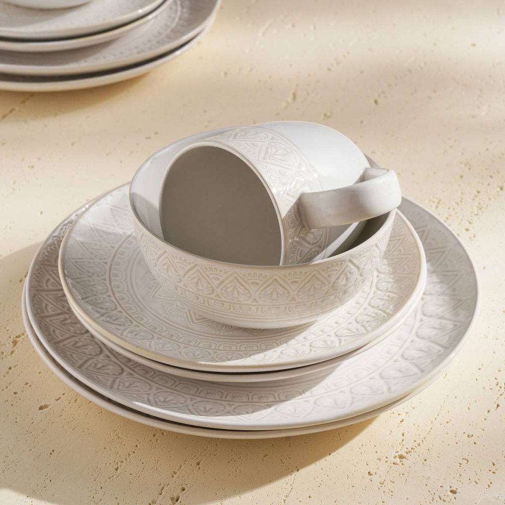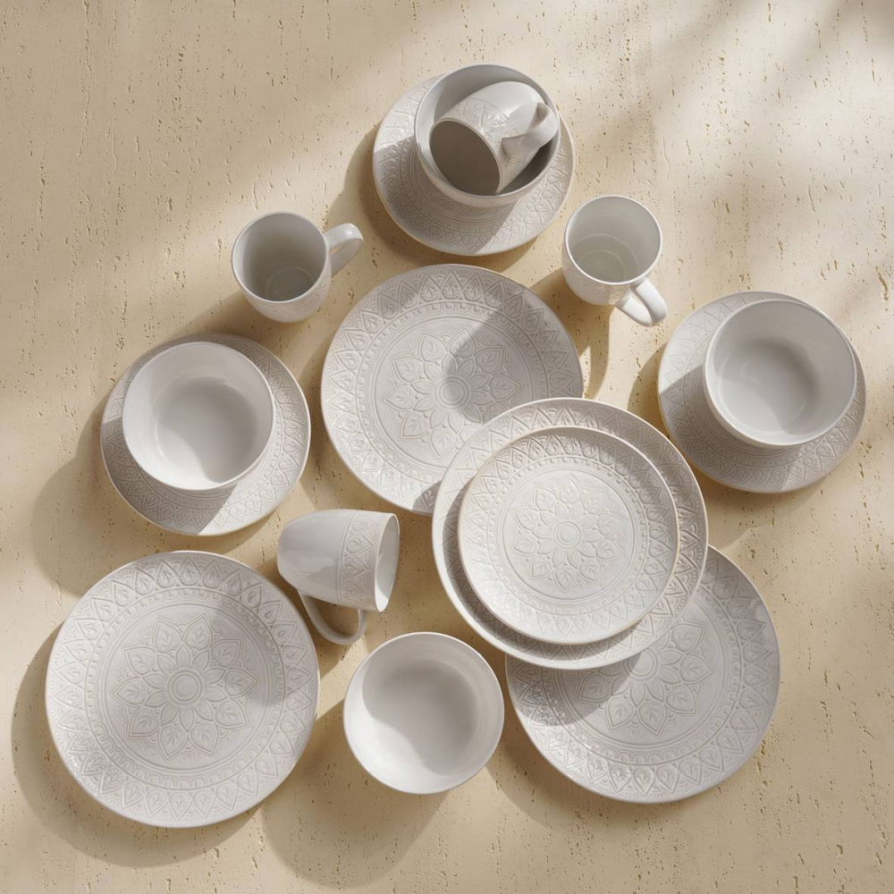 طقم سفرة من الخزف الحجري عالي الجودة بنقوش جميلة (16 قطعة)