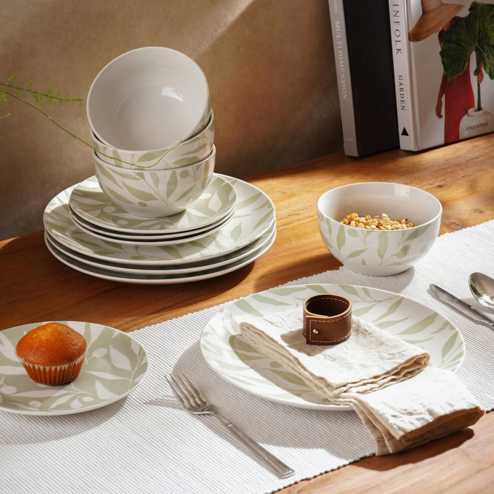 عززي أناقة مائدتك بطقم العشاء الرائع المكون من 12 بتصميم عصري أنيق. مصنوع من البورسلين عالي الجودة.