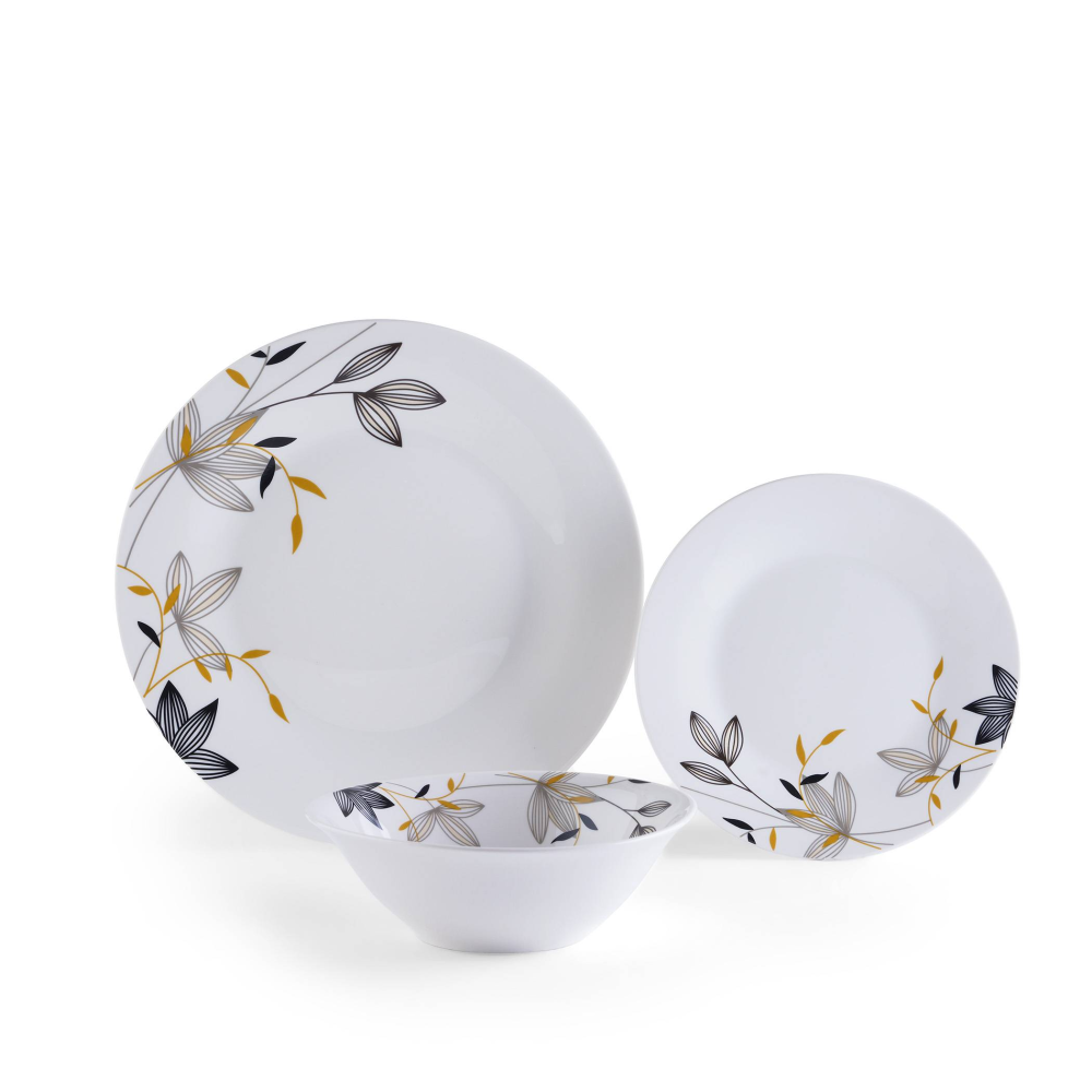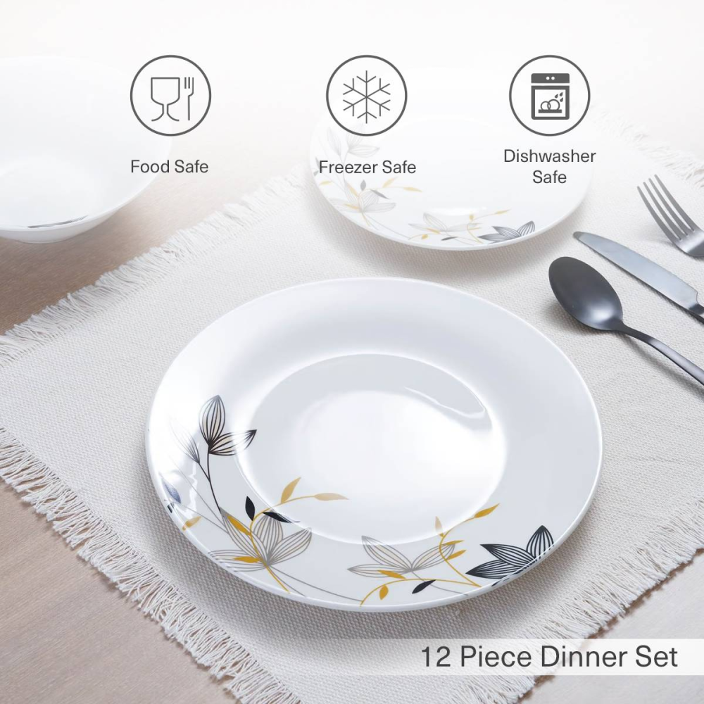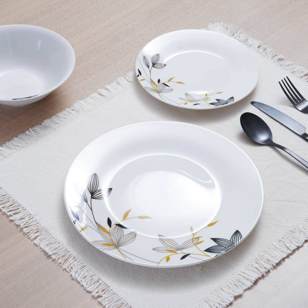 عززي أناقة مائدتك بطقم العشاء الرائع المكون من 12 بتصميم عصري أنيق. مصنوع من البورسلين عالي الجودة.