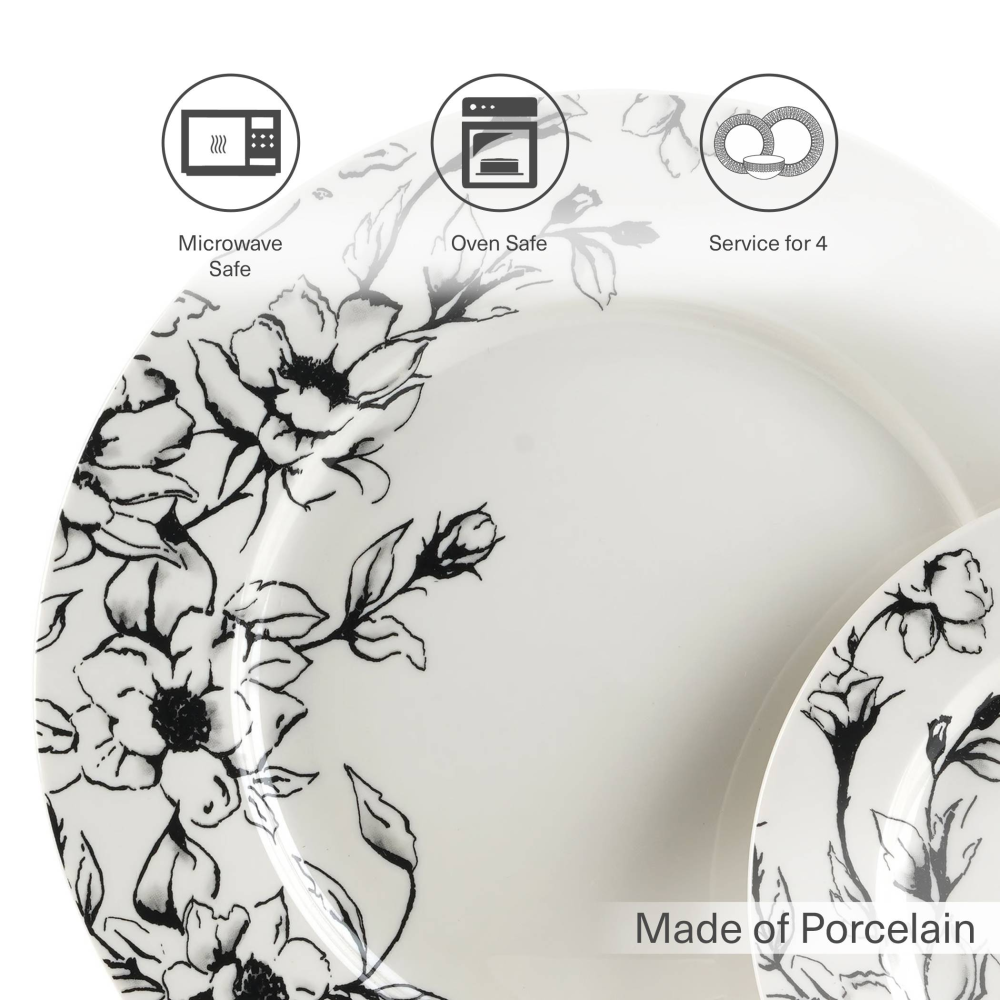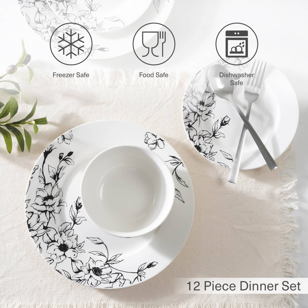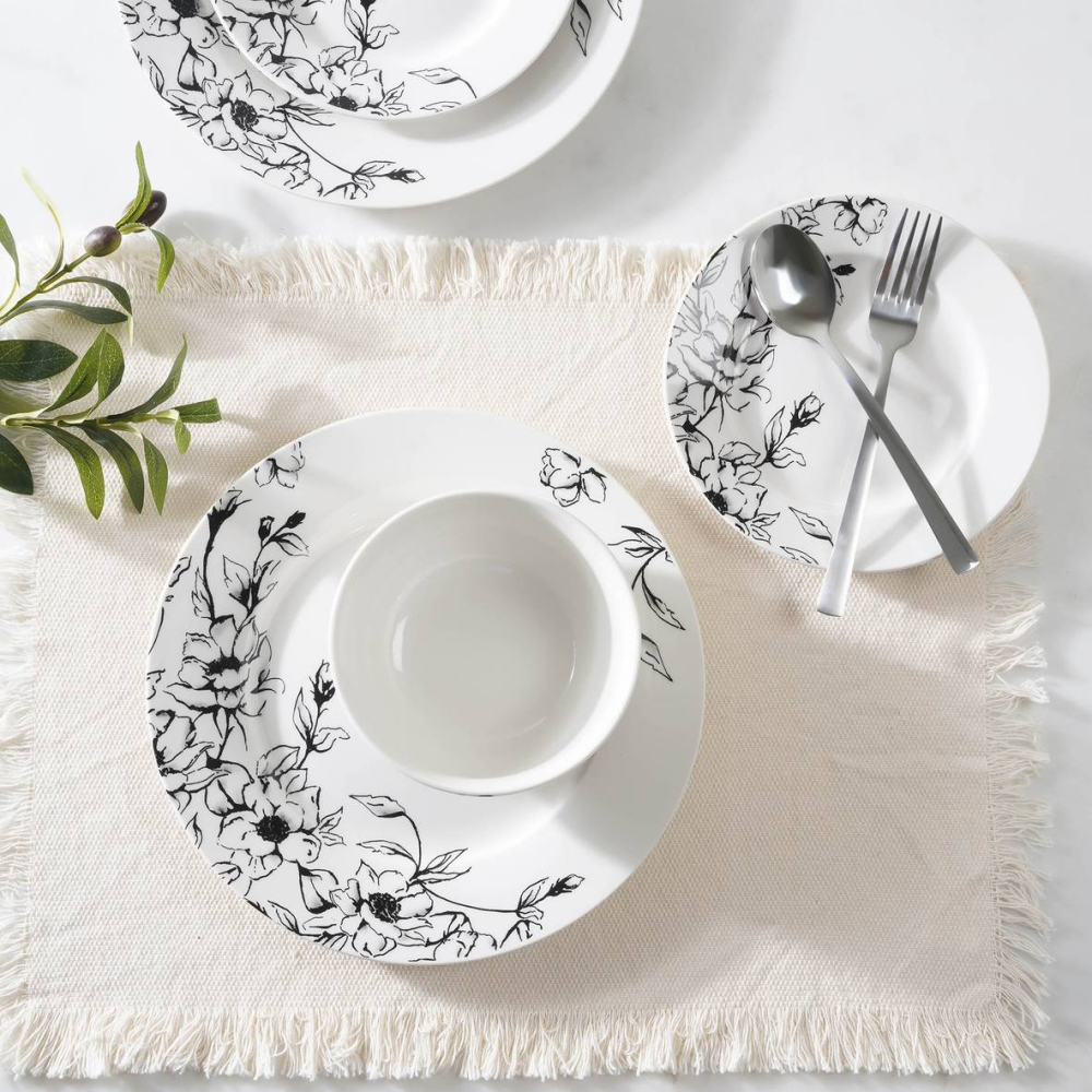عززي أناقة مائدتك بطقم العشاء الرائع المكون من 12 بتصميم عصري أنيق. مصنوع من البورسلين عالي الجودة.