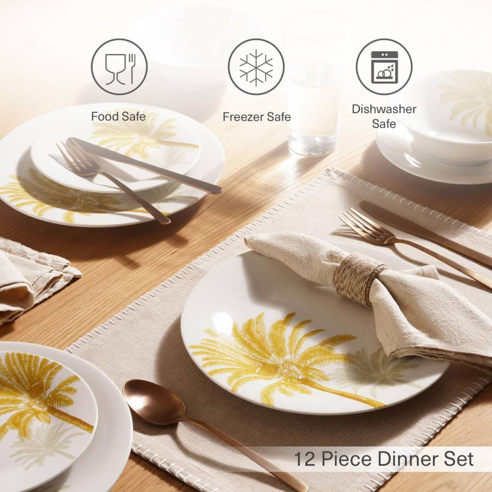 اختاري الفخامة والعمليّة مع طقم العشاء الرائع المكون من 12 قطعة والمصنوع من البورسلين عالي الجودة.