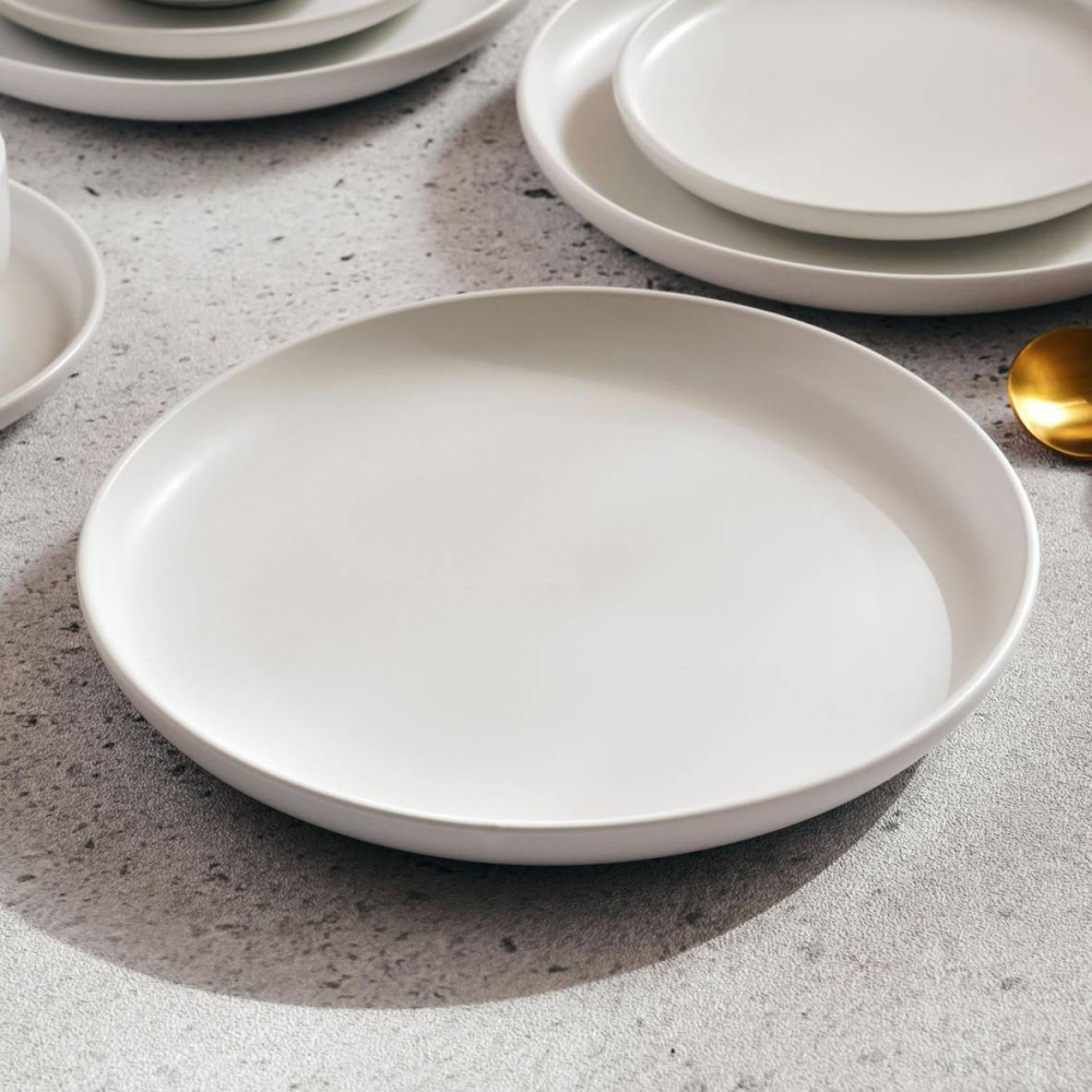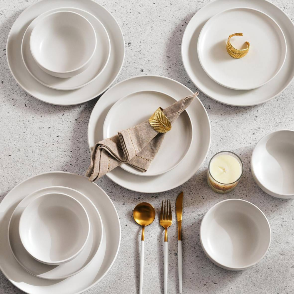 عززي أناقة مائدتك بطقم العشاء الرائع المكون من 12 بتصميم عصري أنيق. مصنوع من البورسلين عالي الجودة.