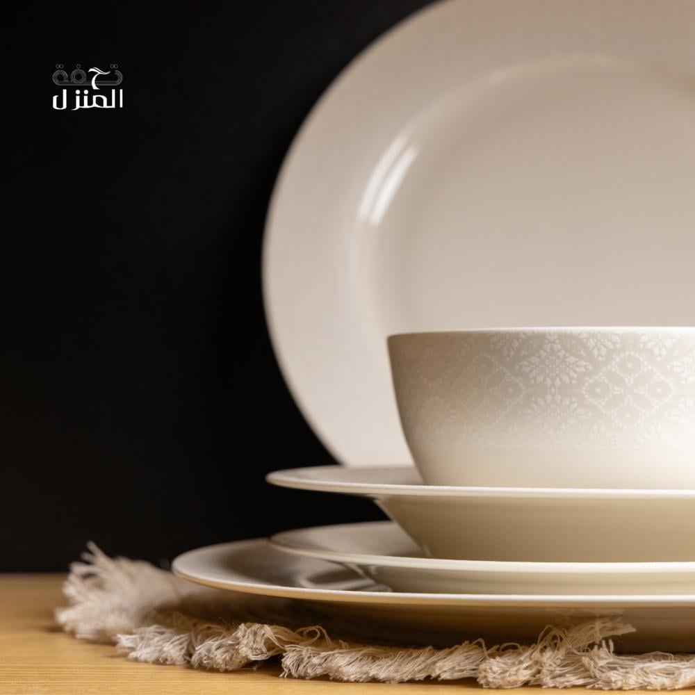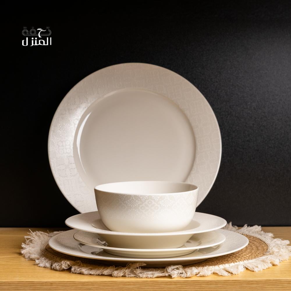 عززي أناقة مائدتك بطقم العشاء الرائع المكون من 16 بتصميم عصري أنيق. مصنوع من البورسلين عالي الجودة.