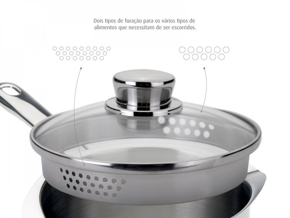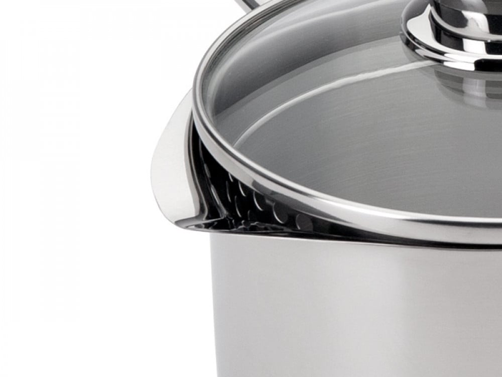 قدر الصلصلة الأنيق Europa من سيلامبوس البرتغالية والمصنوع من الاستينلس ستيل عالي الجودة. يحتوي على مصب مع مصفاة من الجهتين لسهولة في أكبر في الاستخدام.