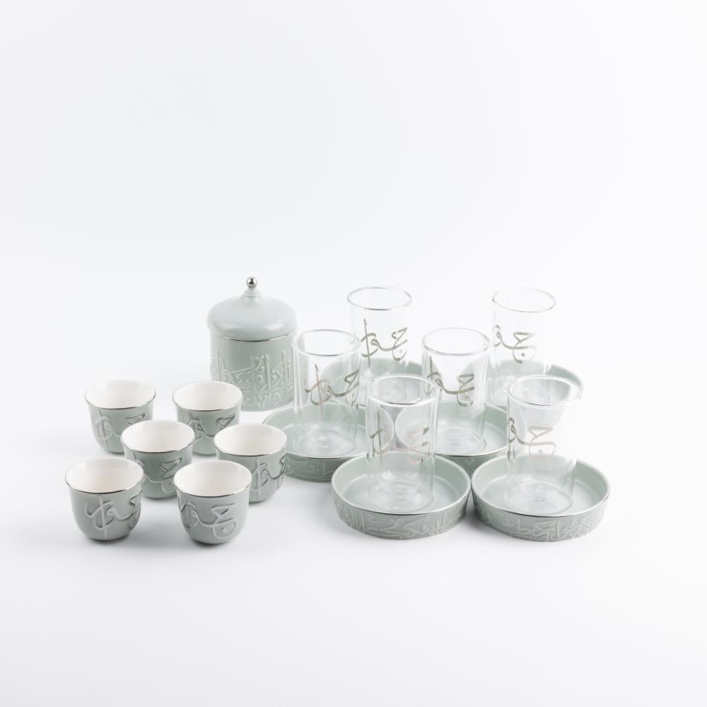 طقم الشاي والقهوة العربية 19 قطعة من مجموعة جوار - رمادي و فضي